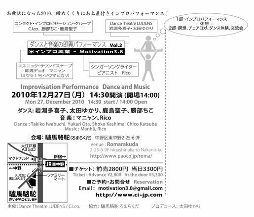 - Place:Morishita Studio Morishita Koutou-ku, Tokyo http://www.saison.or.jp/studio/index.html