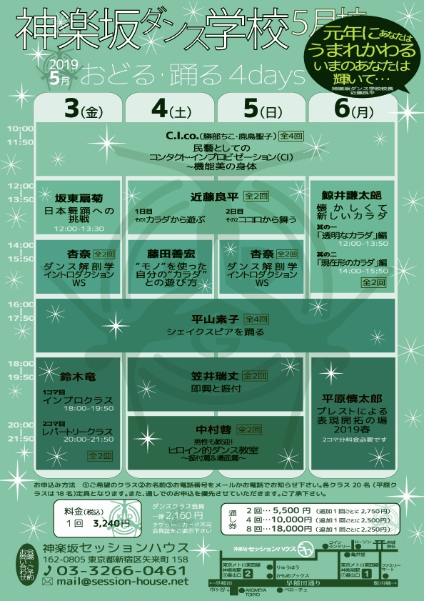 今年のGWも、神楽坂セッションハウスで4日連続クラスを担当します。